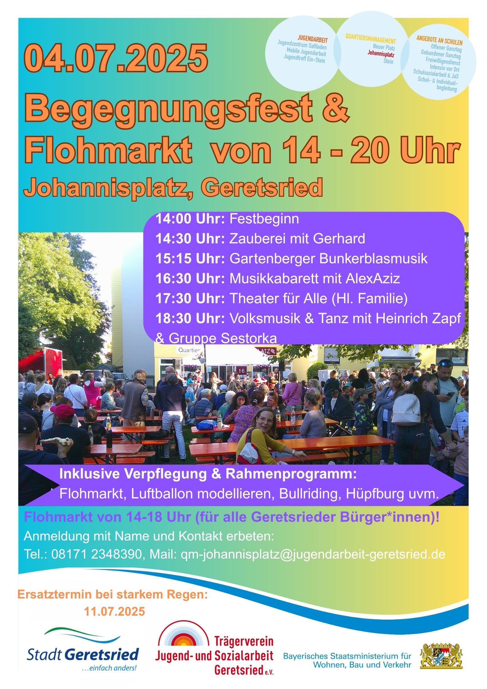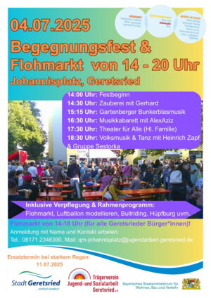 Auch in diesem Jahr feiern wir wieder unser Begegnungsfest mit Flohmarkt am Johannisplatz! Der Quartiersbeirat und das Quartiersmanagement am Johannisplatz laden Sie herzlich ein, gemeinsam unser schönes Quartier zu beleben und zu feiern. Am Freitag, den 04.07.2025 von 14:00 bis 20:00 Uhr freuen wir uns auf ein buntes Programm mit verschiedenen Bands, Tanzeinlagen und anderen Attraktionen für die ganze Familie!