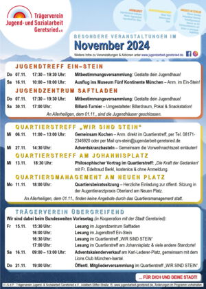 Weiterlesen … Unsere besonderen Veranstaltungen im November 2024!