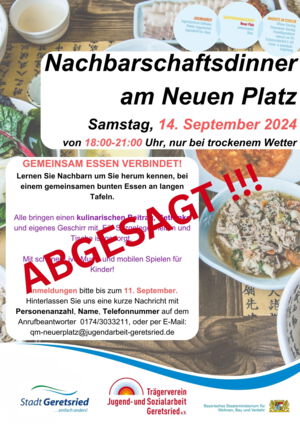 Weiterlesen … Nachbarschaftsdinner am Neuen Platz findet nicht statt!