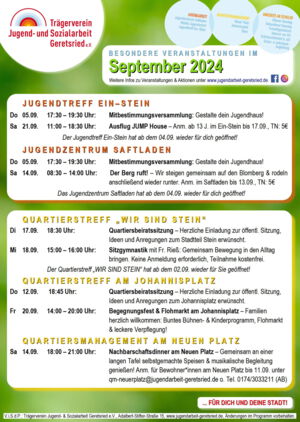 Weiterlesen … Unsere besonderen Veranstaltungen im September 2024!