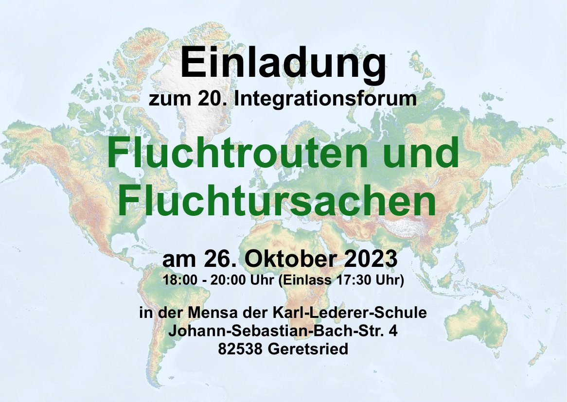 Wir laden herzlich ein zu unserem bereits 20. Integrationsforum in Geretsried: Am 26. Oktober beschäftigen wir uns mit dem Thema Fluchtrouten und Fluchtursachen.