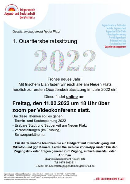 Die erste Quartiersbeiratssitzung am Neuen Platz 2022 steht an!
