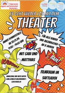 Letztes Jahr hatten wir unser eigenes Theaterstück kreiert. Ein Gruppe von ca. 10 Kindern und Jugendlichen traf sich regelmäßig und arbeitete am Stück "Die freiwillige Kokosnuss", das wir am 8.3.25 aufgeführt haben. Dank von zwei Spenden können wir nun in die 2. Runde gehen. Wir treffen uns immer Donnerstag Abend und spielen, schlüpfen in Rollen, probieren uns aus und haben fest vor im Sommer ein Stück auf die Bühne zu bringen. Wer noch dazu kommen will, kann sich gerne melden unter gabi.gomez@jugendarbeit-geretsried.de