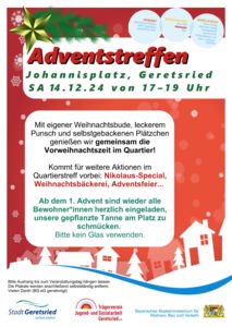 Am Samstag findet wieder unser alljährliches Adventstreffen am Johannisplatz statt!