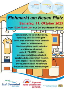 Alle Geretsriederinnen und Geretsrieder sind herzlich eingeladen, eigene Schätze zu verkaufen. Anmeldungen sind ab sofort möglich unter qm-neuerplatz@jugendarbeit-geretsried.de