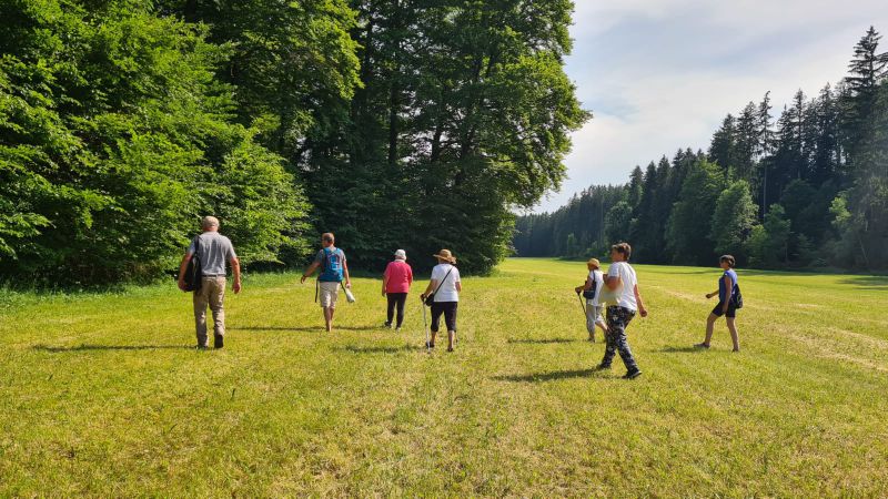 Trotz der Hitze hat sich doch eine Gruppe auf den Weg gemacht und bei einem Spaziergang durch Wald und Wiese die heimischen Kräuterlandschaft rund um den Stadtteil Stein ausgekundschaftet.
