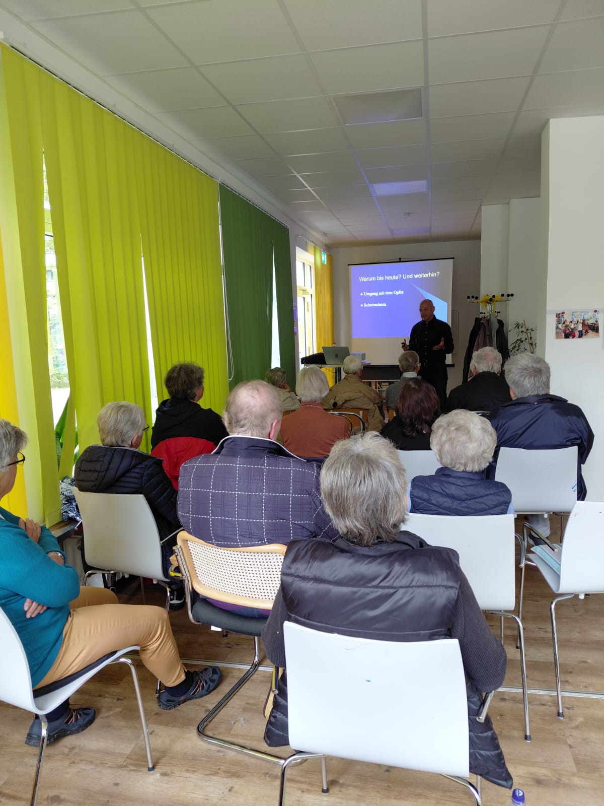 Herr Bräutigam, Kriminalpolizeilicher Fachberater im Bereich Prävention, ging in seinem Vortrag auf mögliche Gefahren durch Betrüger unterwegs und an der Haustür, am Telefon und im Internet ein und stellte dar, wie man sich schützen könne.