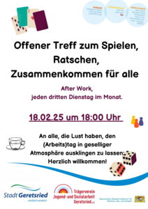 Offener Treff zum Spielen, Ratschen, Zusammenkommen für alle: After Work, jeden dritten Dienstag im Monat