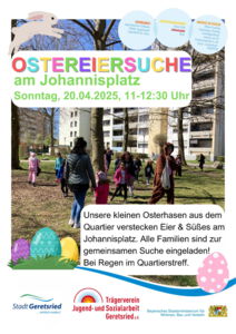 Alle Familien vom Johannisplatz sind herzlich eingeladen, gemeinsam zu suchen. Los geht es ab 11:00 Uhr vor dem Quartierstreff.