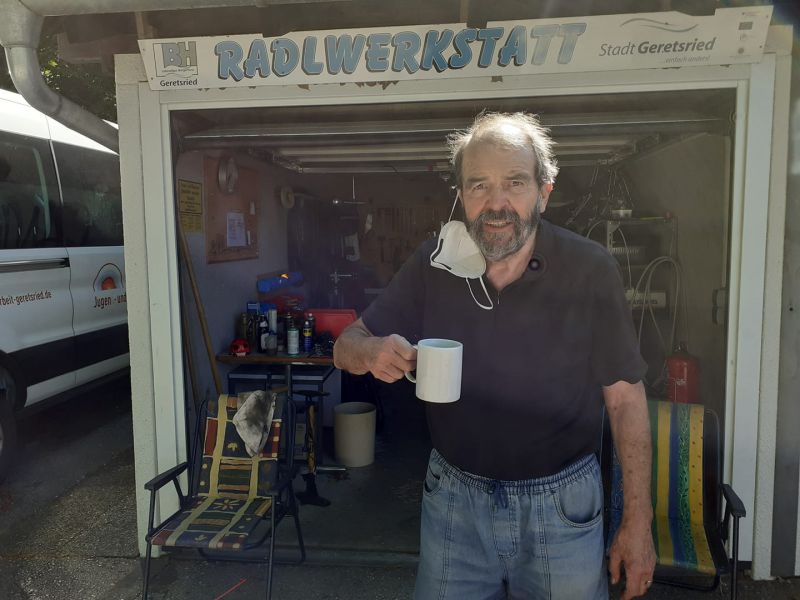 Heuer weiß man es nicht ganz genau... vielleicht hatten sich die Virologen mit dem Wettergott abgesprochen, dass eine spätere Öffnung nach den wenigen frühlingshaften Tagen im März und April gar nicht so dramatisch ist weil bei dem Sch....wetter die Lust am Radln ohnehin nicht so hoch ist. Jetzt aber ist der Frühling endlich richtig da und auch Hartwig und Lars vom Team unserer Radlwerkstatt packen wieder kräftig an um den Geretsrieder*innen zu zeigen, wie man sein Rad wieder flott bekommt. Unser Kaffeeservice ist ein selbstverständliches Dankeschön für unsere Ehrenamtlichen. Mehr zur Radlwerkstatt ist hier zu lesen.
