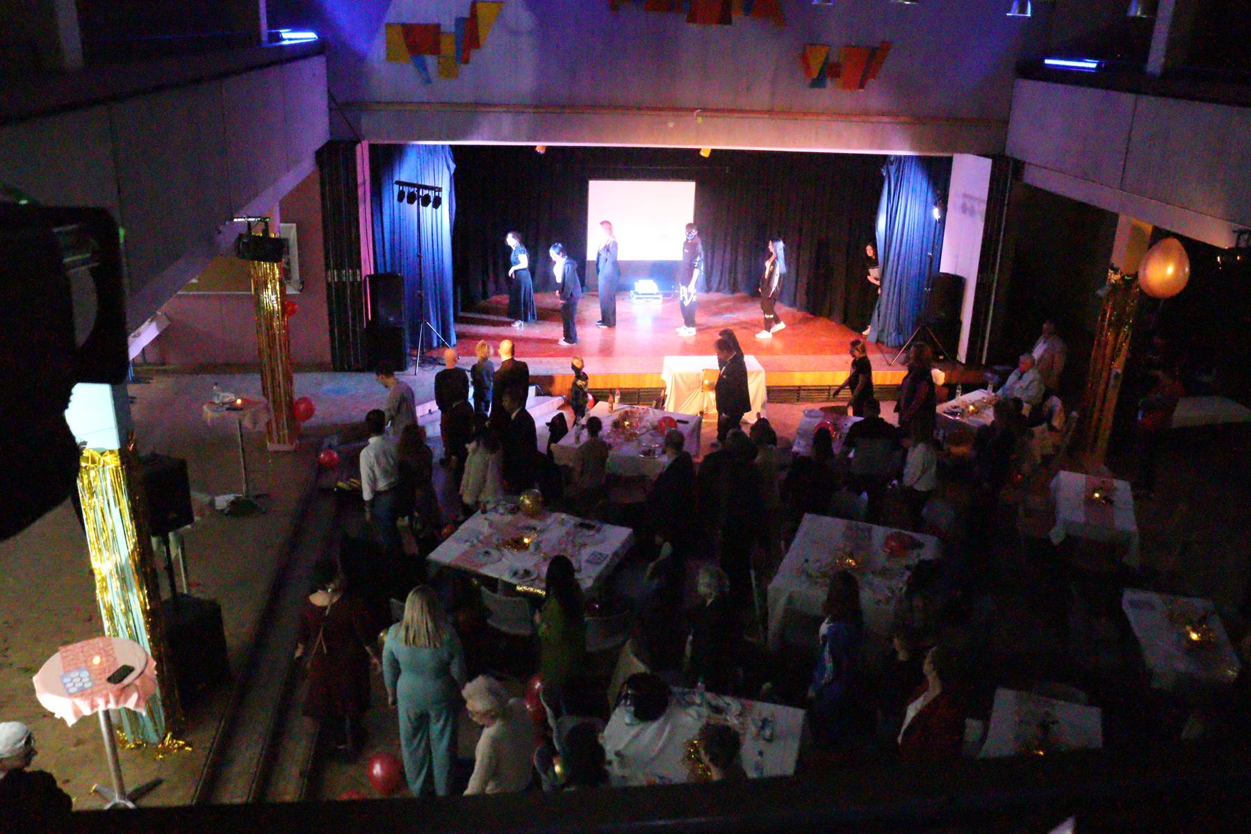 Die letzten Wochen waren geprägt von zahlreichen intensiven Proben, finalen Gestaltungsarbeiten und kulinarischen Vorkostungen. Die Technikgruppe, bestehend aus selbstorganisierten Jugendlichen, arbeitete mehrere Tage lang daran, die Bühne perfekt auszuleuchten sowie die Ton- und Mikrofoneinrichtungen vorzubereiten. Kurz vor 18:00 Uhr nahmen die Gäste mit Hilfe von Mitarbeiter Piero Loreto und der jugendlichen „Security“ ihre Plätze ein. Als der Vorhang sich öffnete, begrüßte der Geschäftsführer des TVJAs, Rudi Mühlhans, das Publikum. Und dann ging es los mit dem Theaterstück „Die freiwillige Kokosnuss“. Unter der Leitung von Gabi Gomez (Buch und Regie) und Verena Peck (Regie) führte ihre talentierte junge Theatergruppe das Publikum mit einzigartigen Charakteren durch ein spannendes Abenteuer, das mit einem mysteriösen Flugzeugabsturz auf einer Insel begann. Die jungen Darsteller*innen begeisterten das Publikum mit Witz, Action und einer packenden Inszenierung und ernteten dafür lautstarken Applaus.