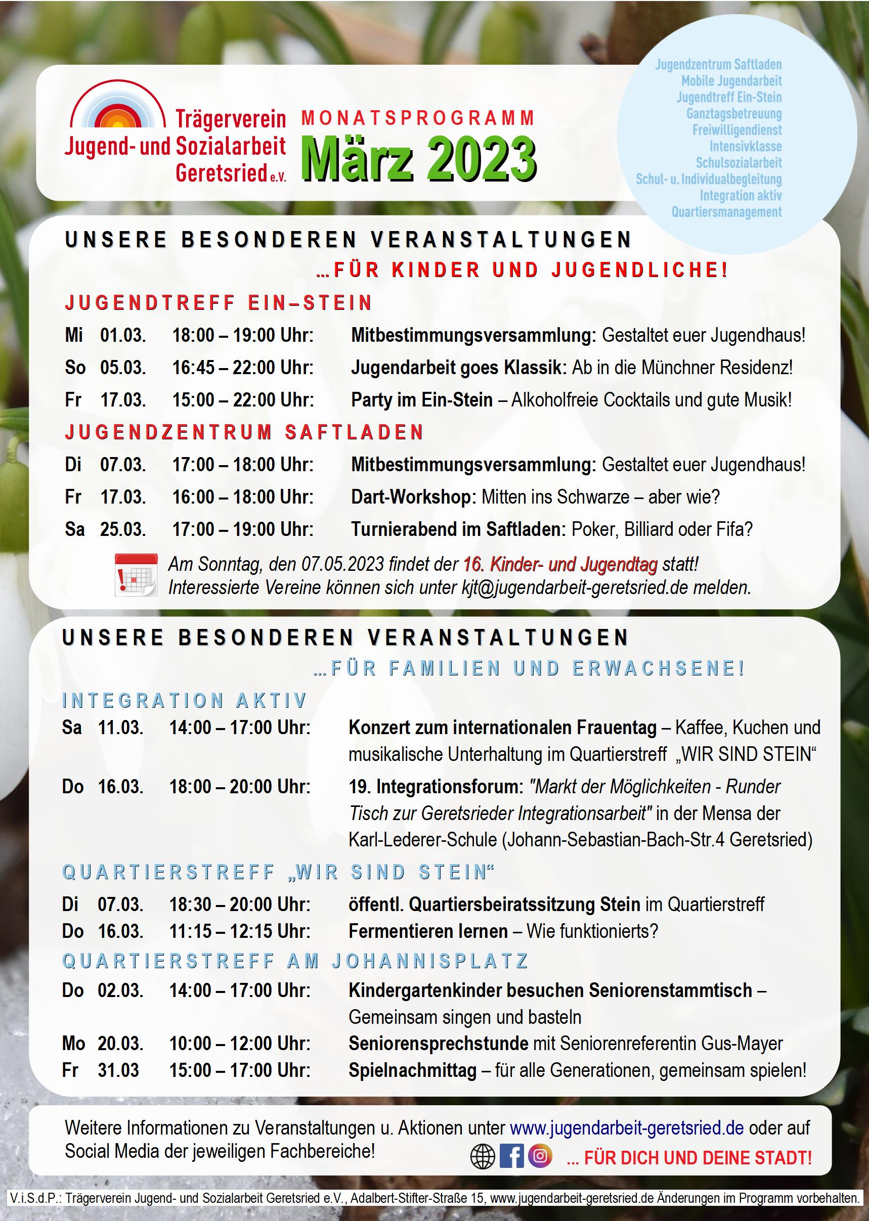#tvja #monatsprogramm #jugendarbeit #sozialarbeit #geretsried #ger #geretsriederleben #stadtgeretsried #mobilejugendarbeit #mja #badtölzwolfratshausen #badtoelzwolfratshausen #lkrbadtölzwolfratshausen #jugend #jugenzentrum #juz #jugendtreffeinstein #jugendtreff #quartiersmanagement #quartier #neuerplatz #stein #johannisplatz #quartierstreff #wirsindstein #quartierstreffamjohannisplatz #quartiersarbeit #intergrationaktiv #integration #integrationgeretsried #kinderundjugendtag2023 #kjt #kjt2023