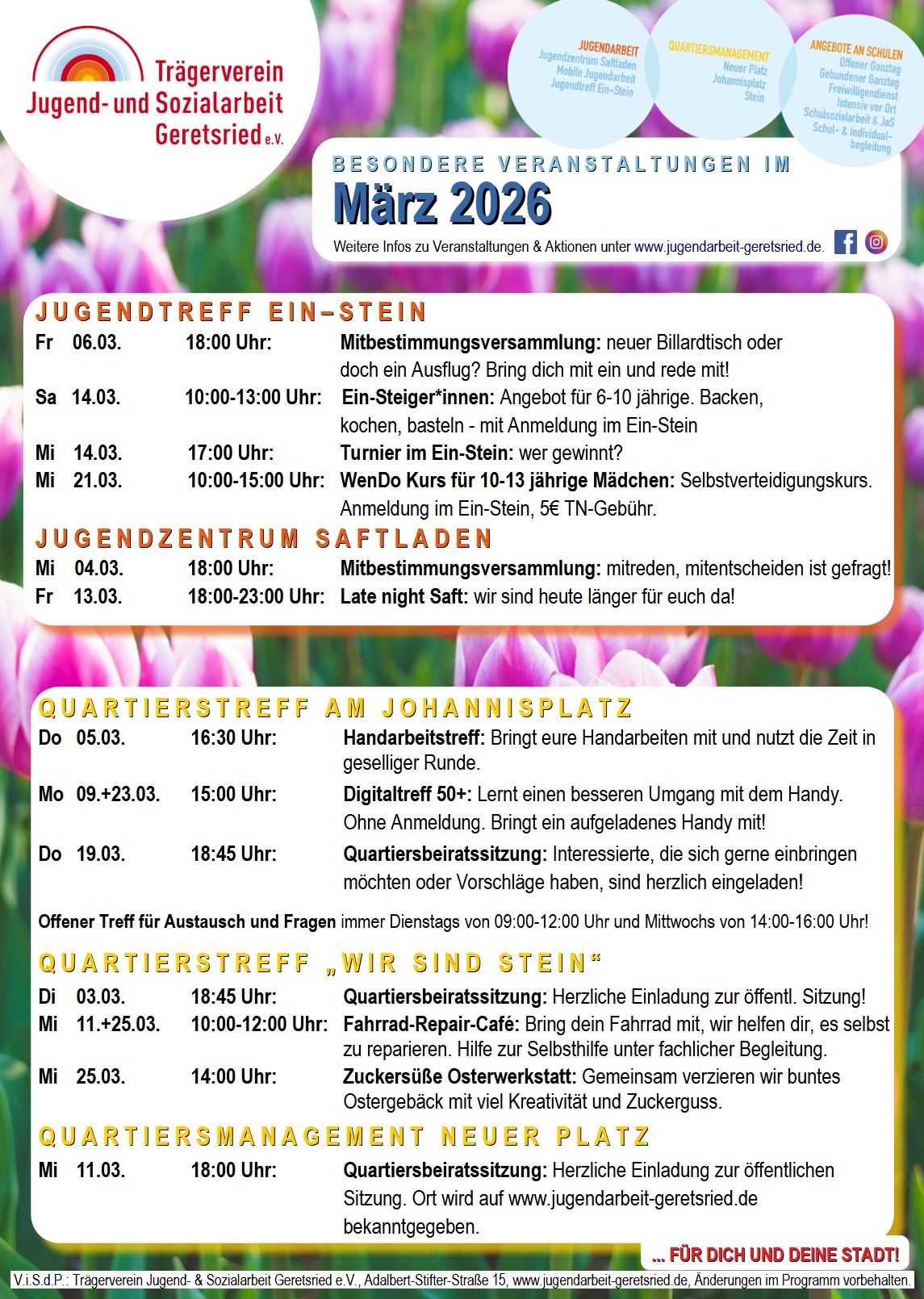 Unsere besonderen Veranstaltungen im Monat März 2026!