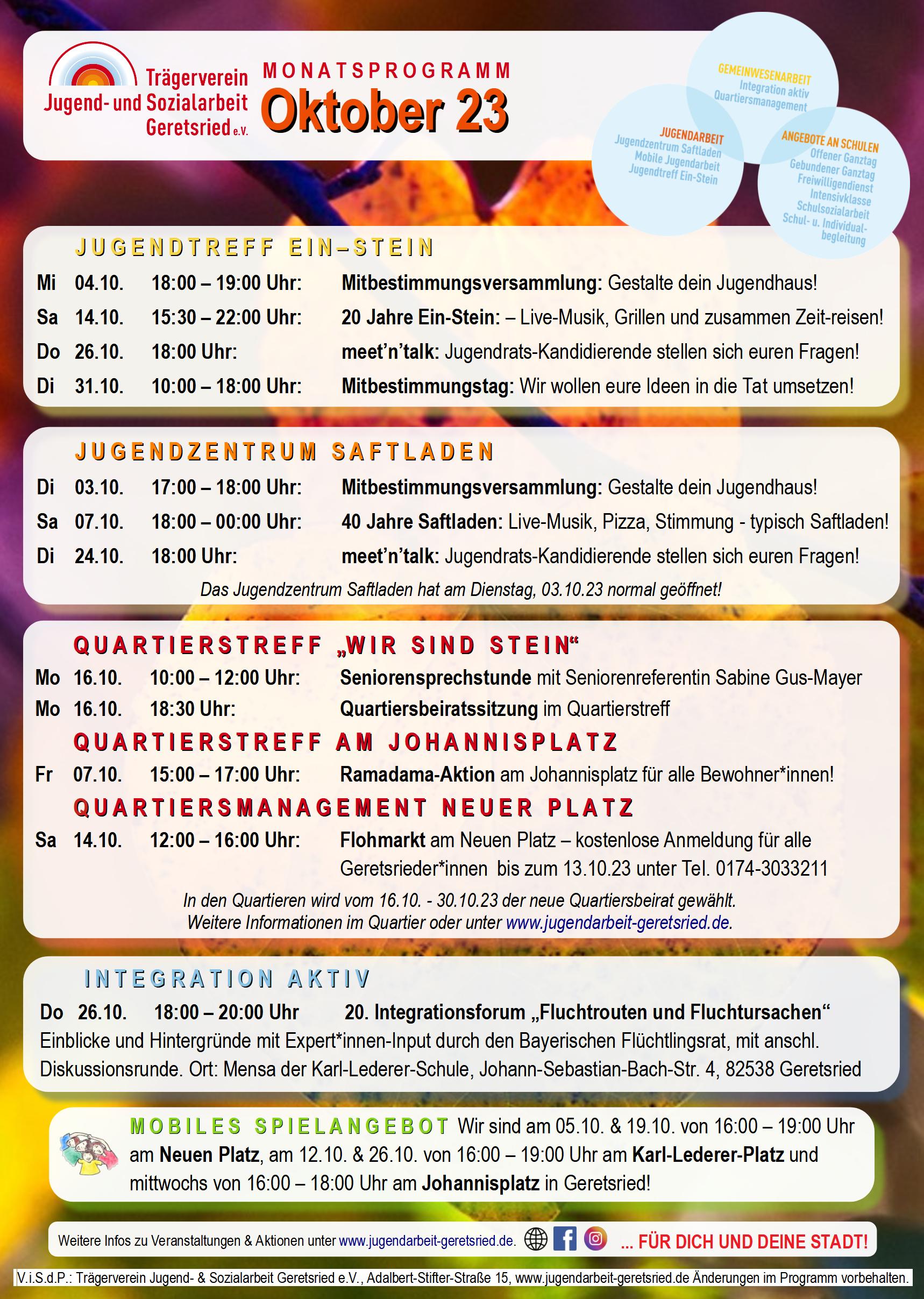 Unsere besonderen Veranstaltungen im Oktober 2023!