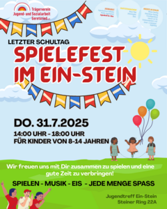 Wir freuen uns sehr mit Dir wieder unser jährliches Spielefest am letzten Schultag zu feiern. Wir werden uns wieder einiges überlegen für Dich, aber natürlich kannst Du auch Deine Ideen mit einbringen. Je nach Wetterlage werden wir uns Spiele für Dich überlegen, es wird genug Eis geben und wir werden sicher wieder eine Menge Spaß zusammen haben.