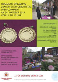 Das Ein-Stein hat Geburtstag und das wird gefeiert! Mit Geburtstagstorte und Flohmarkt. Jeder kann mitmachen! Ob beim Backen oder Verkaufen.
