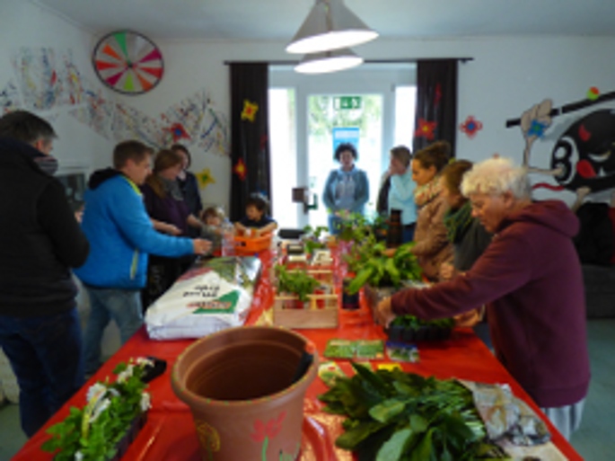 Überraschend viele Anwohner und Auswärtige folgten dem Aufruf des Jugendtreffs Ein-Stein und dem Quartiersmanagement Stein und brachten Pflanzenableger aller Art für die Tauschbörse mit. Neben den Pflanzen selbst wurden auch Pflegetipps ausgetauscht. Die Besucherinnen und Besucher hatten die Möglichkeit, die Pflanzen vor Ort in verschiedene Pflazgefäße zu setzen, diese wurden im Anschluss mit nach Hause genommen oder um den Jugendtreff verteilt. Ein besonderes Highlight war das Herstellen von Samenbomben. Dies sind Kugeln aus Samen, Heilerde und Ton, die dann an verschiedenen Stellen ausgeworfen werden können - mit ein bisschen Glück und ausreichend Sonnenschein werden im kommenden Sommer an vielen Ecken im Stadtteil Stein bunte Blumen sprießen.