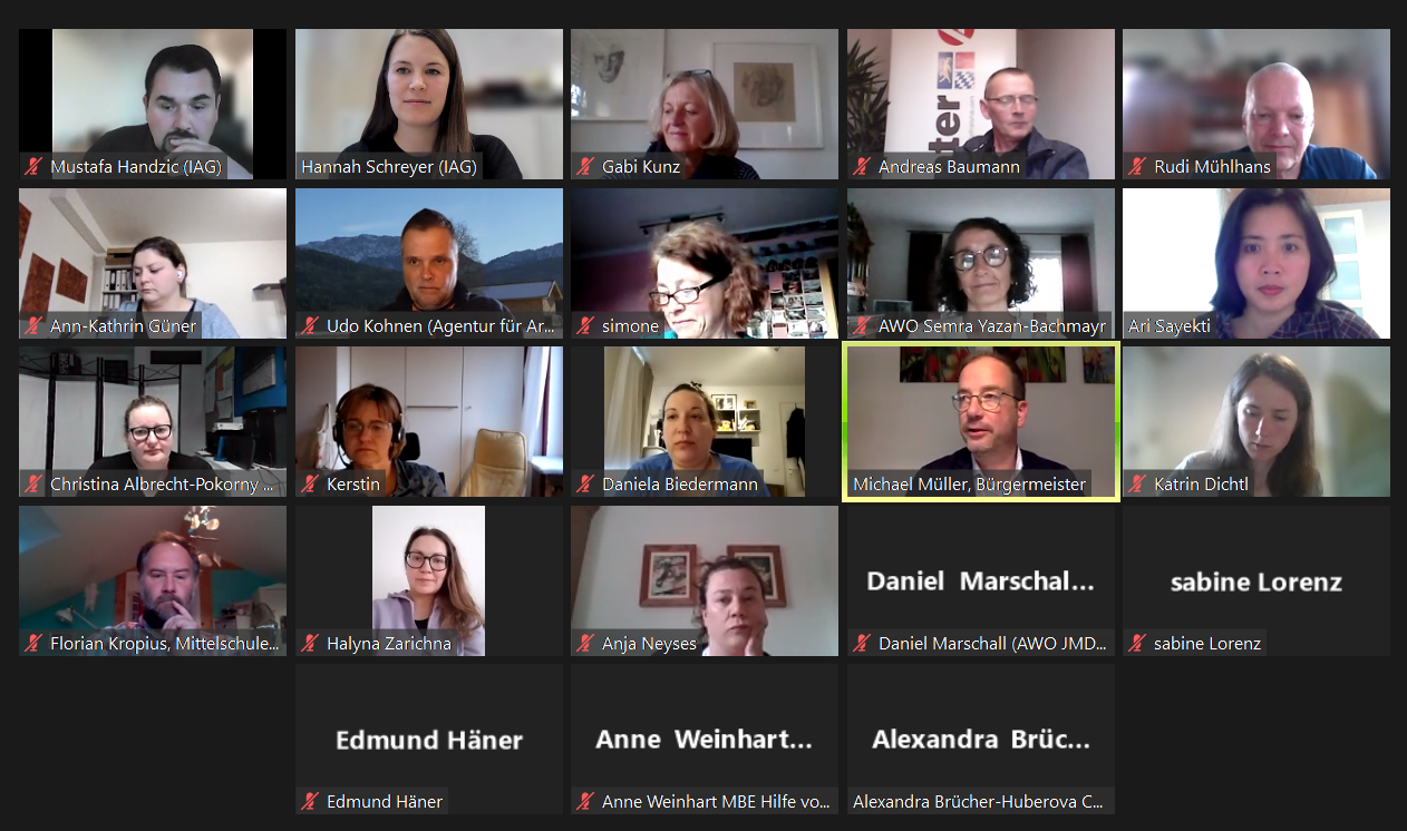 Vertreter*innen aus der Politik und Vereinen, Personen aus der Zivilgesellschaft und Akteure aus dem Arbeitsfeld der Integration tauschten sich im virtuellen Forum über Aufgaben und Ziele in den Bereichen Arbeit, Bildung, Sprache, Wohnen und soziale Teilhabe aus.