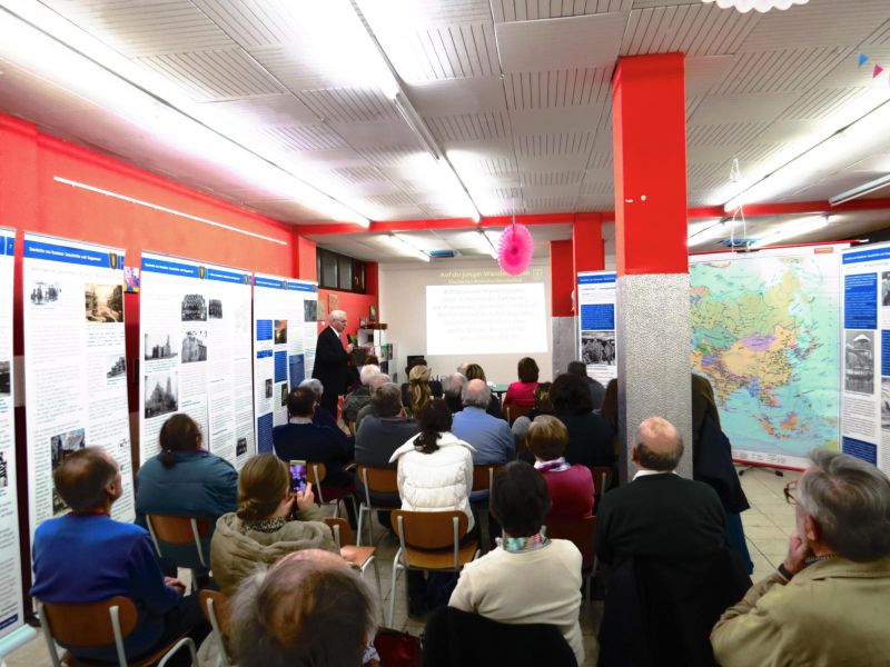 Die Wanderausstellung über Geschichte und Gegenwart der Deutschen aus Russland, welche sich vom 18.Februar 2019 bis zum 20.März im Quartierstreff WIR SIND STEIN befand, wurde vom Projektleiter Jakob Fischer mit einem Vortrag abgeschlossen. Das Projekt wird vom Bundesamt für Migration und Flüchtlinge und dem Ministerium für Inneres gefördert. Dienstags und donnerstags Abend wurde der Quartierstreff jeweils über den Zeitraum der Ausstellung für Besucher geöffnet. Jakob Fischer, von der Landsmannschaft der Deutschen aus Russland e.V., welcher die Wanderausstellung in Zusammenarbeit mit der Koordinationsstelle Integration aktiv in den Quartierstreff brachte, präsentierte in seinem aufschlussreichen Vortrag die Hauptstationen der Geschichte und Gegenwart der Deutschen aus Russland. Fischers Vortrag wurde mit anekdotischen Zeitzeugenberichten seitens des Publikums zusätzlich ausgeschmückt. Der Projektleiter ist für seinen authentischen Vortragsstil bekannt. Seine eigene Biographie als Landsmann der Deutschen aus Russland kommt ihm bei seiner Arbeit spürbar zugute. Abgerundet wurde der Vortrag von deutschen Volksliedern, die Herr Fischer gemeinsam mit dem Besuchern anstimmte. Volkslieder sind und waren für Deutsche aus Russland stets identitätsstiftend. Aufgrund seines beeindruckenden Engagements wurde Jakob Fischer kürzlich mit dem Bundesverdienstkreuz ausgezeichnet.