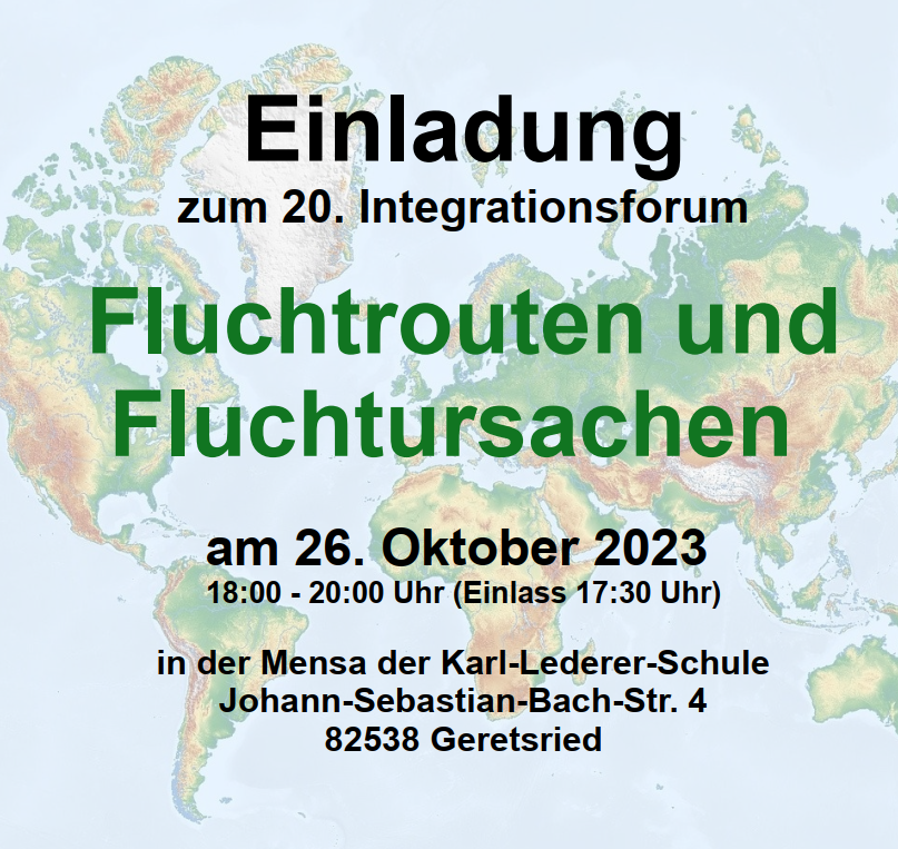 Wir laden alle Interessierten ganz herzlich ein, am 26. Oktober zu unserem bereits 20. Integrationsforum in Geretsried zu kommen!