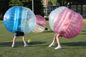 Dieses actiongeladene Spiel bringt Spaß und Spannung auf ein ganz neues Level, indem es das klassische Fußballspiel mit einer ordentlichen Portion Chaos kombiniert. Beim Bubble-Fußball bist du nicht nur am Ball, du bist im wahrsten Sinne des Wortes sogar im Ball. Denn vor dem Anpfiff steigst du vom Kopf bis zu den Knien in einen riesigen Gummiball. Der Rest gleicht im Grunde einem normalen Fußballspiel. Eingepackt in deinen XXL-Airbag, eroberst du den Spielball und machst dich auf die Jagd nach Toren.