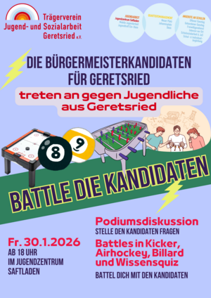 Ort: Jugendtreff Ein-Stein, Steiner Ring 22a, Geretsried