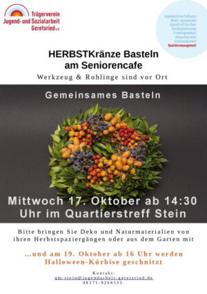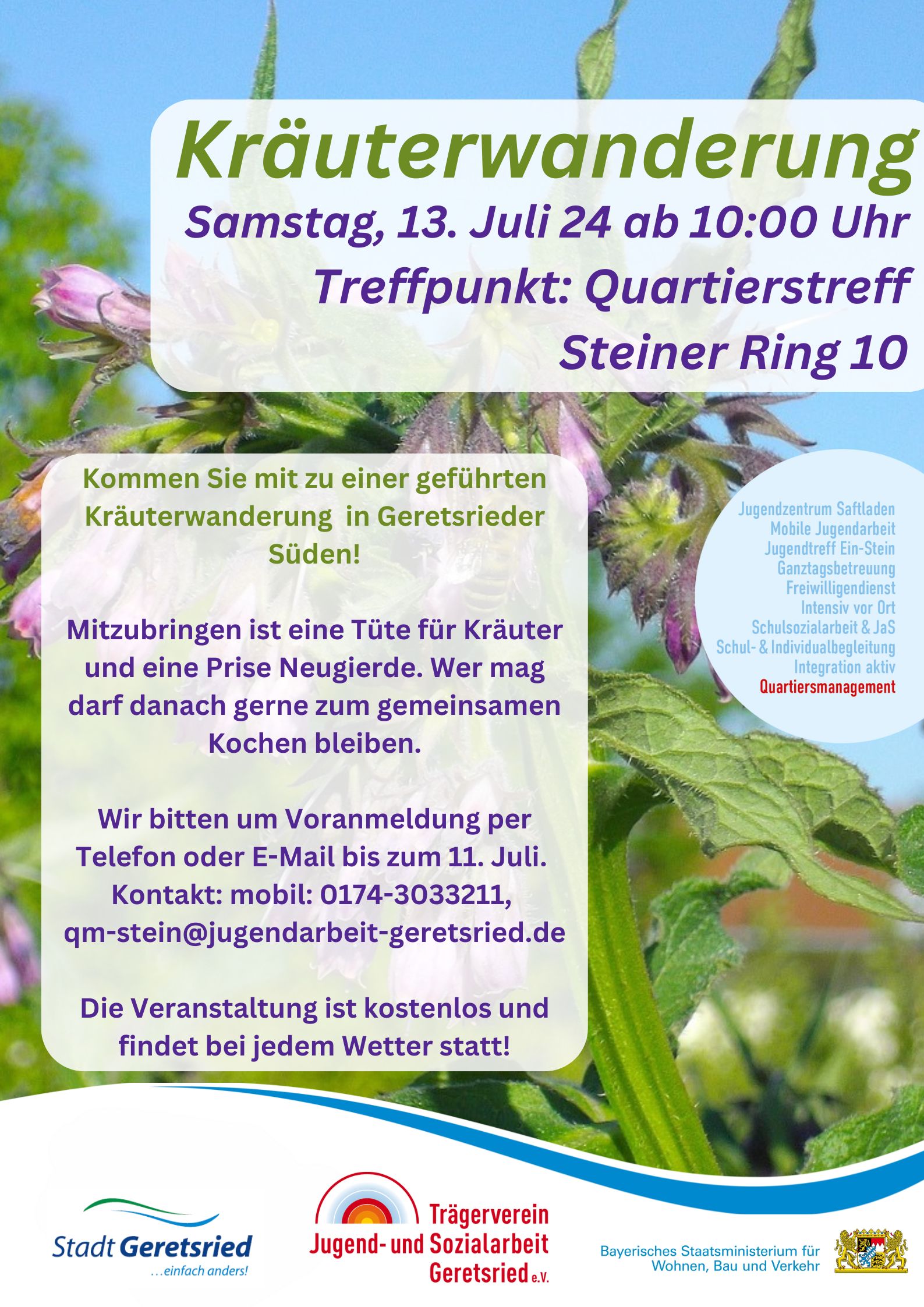 Bei Fragen wenden Sie sich jederzeit an das Quartiersmanagement Stein am Steiner Ring 10: qm-stein@jugendarbeit-geretsried.de oder 08171/9266535.