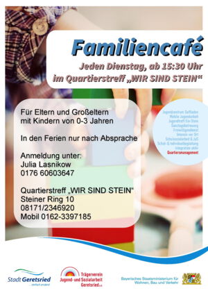 In Zukunft findet das Familiencafé im Quartierstreff immer am ersten Mittwoch im Monat statt (das nächste Mal am 1. August), ab 14:30 Uhr im Quartierstreff WIR SIND STEIN.