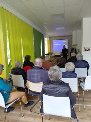 In seinem Vortrag im Quartierstreff Stein (Steiner Ring 10) nahm Siegfried Gulde 20 Interessierte mit auf eine Reise in die Natur – zu den Bienen. Dabei ging es über die Entstehung und Herkunft unserer Bienen, um die Wichtigkeit ihrer Bestäubungsleistung und um die Biologie und die Lebensabläufe eines Bienenvolkes. Vielen Dank an die Besucher und insbesondere an Herrn Gulde.