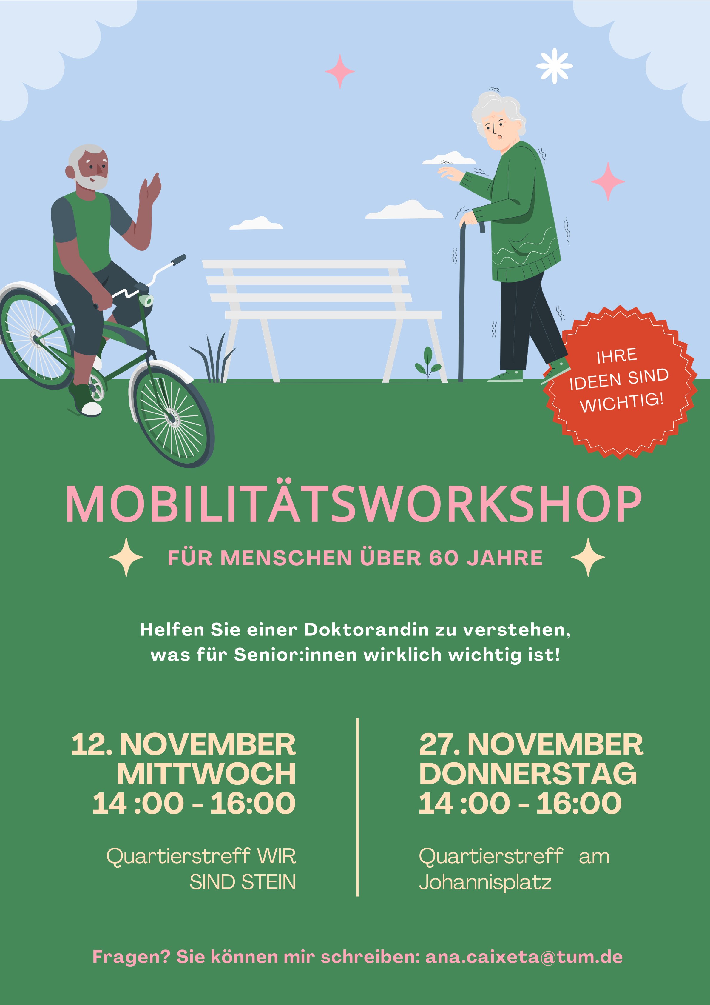 Wie erleben ältere Menschen ihre alltäglichen Wege durch Geretsried? Welche Herausforderungen begegnen ihnen – und wie könnte die Stadt seniorenfreundlicher werden? Diesen Fragen widmet sich ein partizipativer Mobilitätsworkshop, zu dem Ana Clara Szymanski, Doktorandin an der Technischen Universität München (TUM), herzlich einlädt.