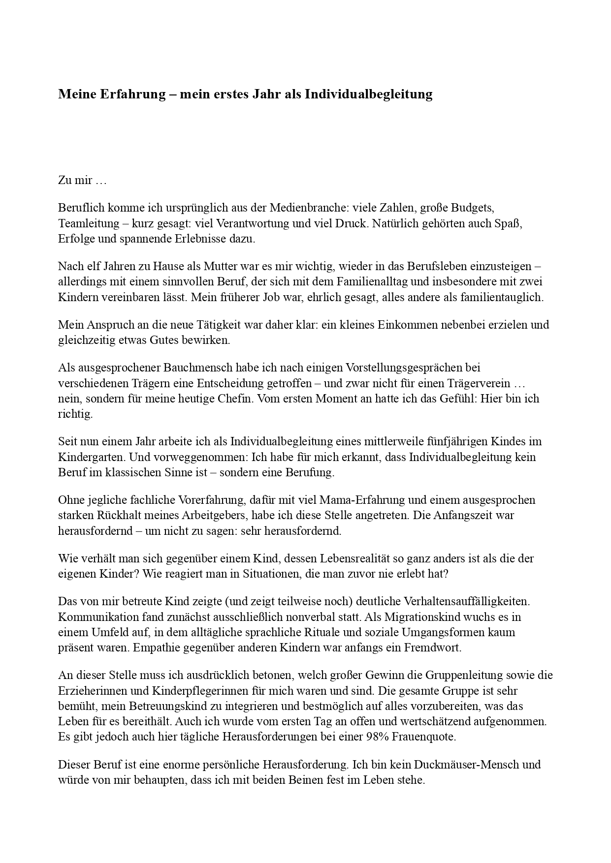 Ein Jahr Individualbegleitung - Eindrücke und Erfahrungen